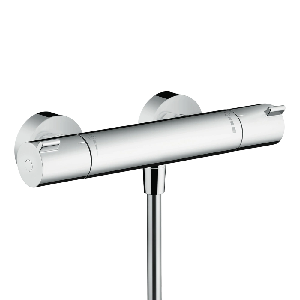 The hansgrohe Ecostat shower thermostat is equipped with a thermostatic cartridge, a safety lock at 38 °C and a backflow preventer. The thermostat also has an Eco-stop button (limits the flow rate to 10 l/min...