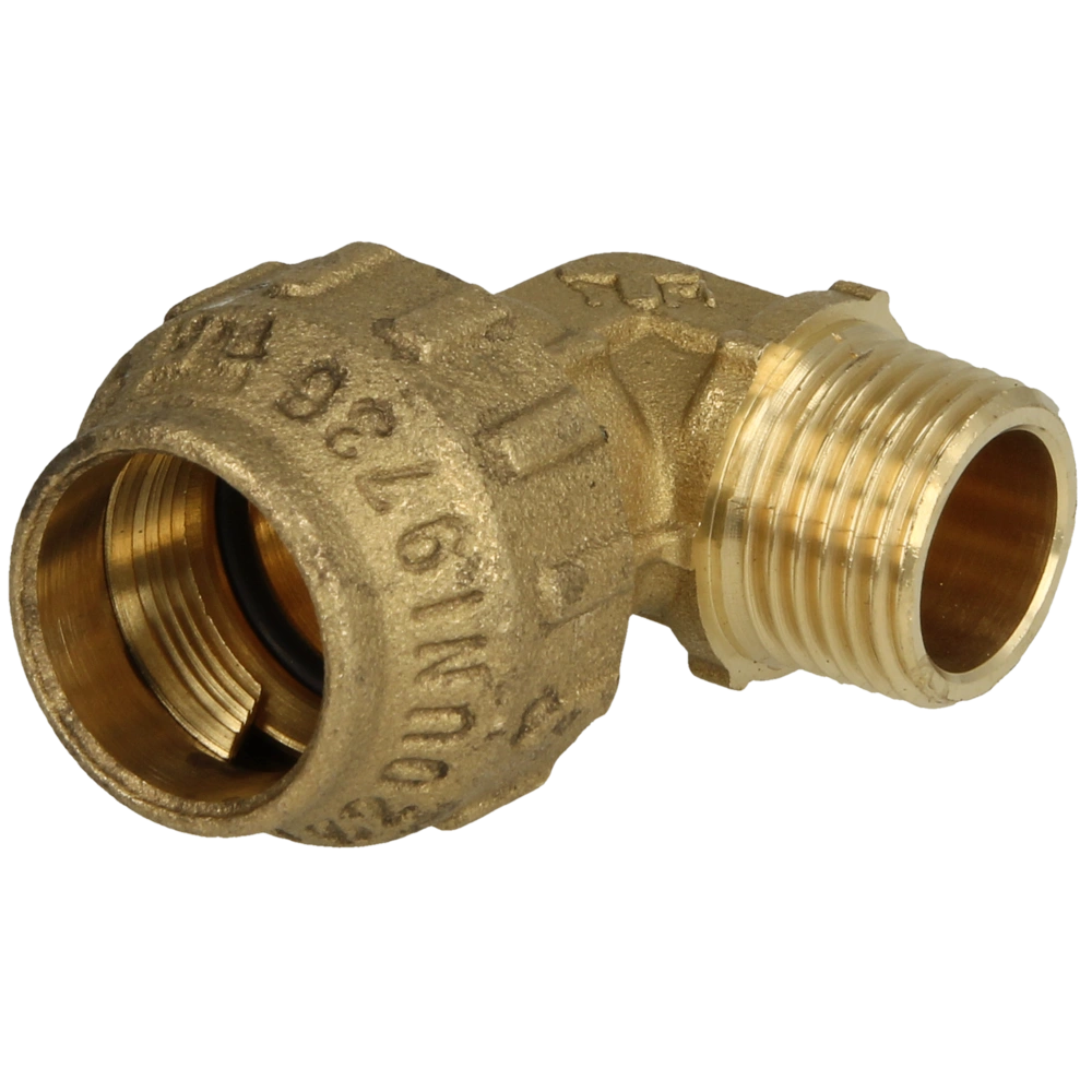 Brass compression fitting with brass compression ring for the connection of PE pipes in drinking water installations.