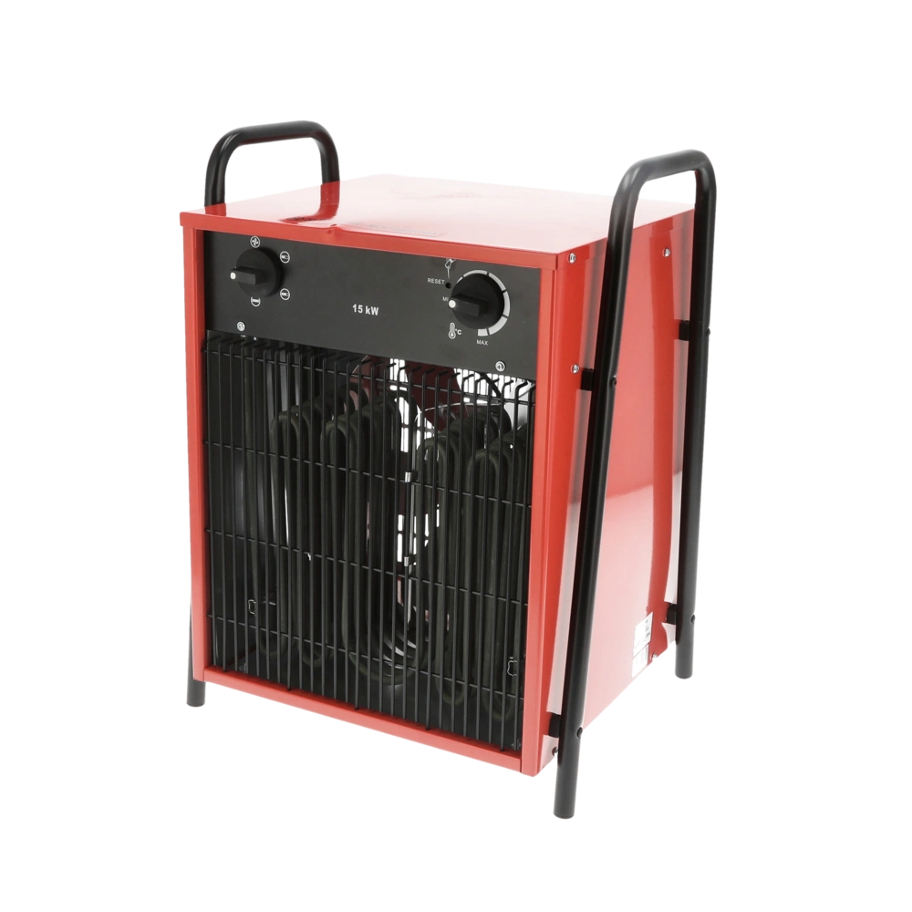 This portable fan heater with powder-coated steel sheet housing offers you the option for temporary or continuous heating. The low-noise and powerful fan motor is built for an optimal air flow and instant heating start. An infinitely variable thermostat controls the heating and the fan can be set in three levels via rotary switch.