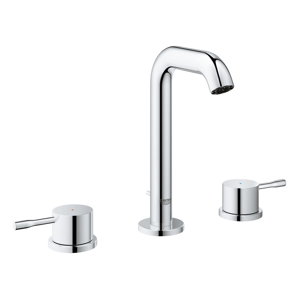 The tap has 1/2" ceramic headparts and a spout with mousseur while the GROHE EcoJoy® technology ensures a reduced water consumption. Moreover, the tap is provided with pressure-resistant, flexible connection hoses between spout and side valves.