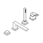 The GROHE Eurocube 4-hole single-lever bath combination consists of hand shower Euphoria Cube, a 2,000-mm long metal shower hose, the metal operating lever, flexible connection hoses and a bath spout with mousseur...