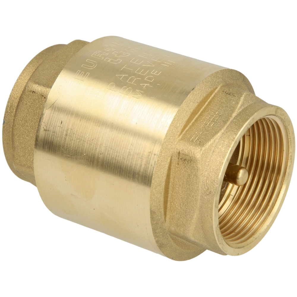 Check valve suitable for water supply, heating, air-conditioning or compressed-air systems. The valve can be installed horizontally, vertically or obliquely. Its body is made of brass with a valve insert and spring made of stainless steel and an NBR washer.