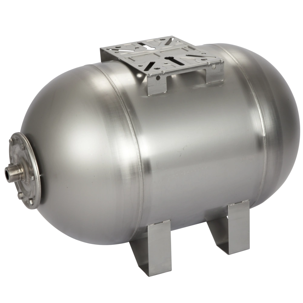 The expansion vessel for domestic waterworks and water heaters is fitted with a replaceable butyl diaphragm. The vessel is designed including stainless steel (AISI 304) flange.