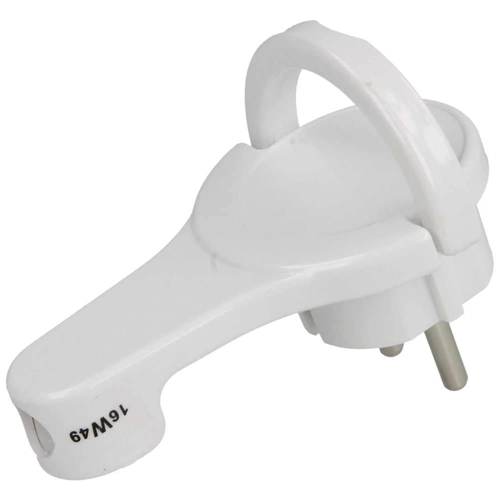 This is an extra-flat angle plug that fits behind any piece of furniture. It is only 8 mm thick. The lateral cable entry for cables of up to 3 x 1.5 mm² prevents cable bending. If the plug should be pulled out, a foldable grip facilitates the removal of the plug.