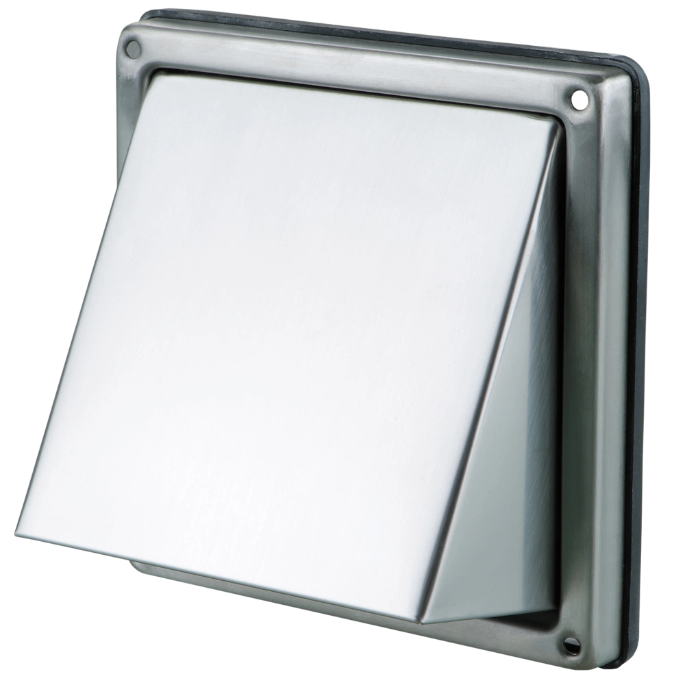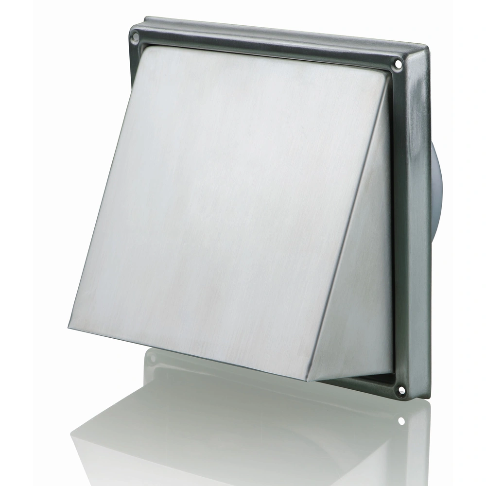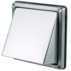All product informationStainless steel vent hood with spigot and back draught air damper for outer wall mounting. The hood for covering ventilation shaft vents can be connected to round ventilation ducts, a sealing ring, thereby, provides for an airtight connection to the wall.
