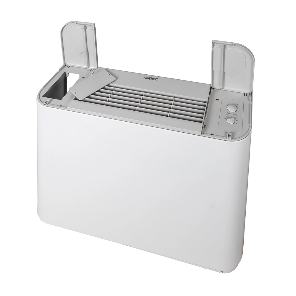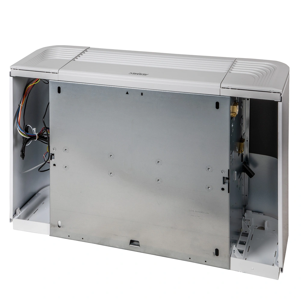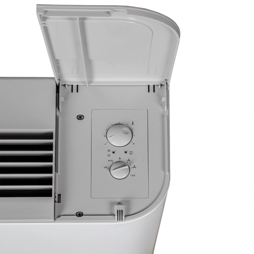 High-quality fan coil unit to be used for heating and cooling. Ideally suitable for the operation in conjunction with a modern heat pump. Thanks to the fan support, the fan coil reaches a two- to three-times higher output compared to common radiators, with the same inlet temperature. The galvanised housing and the powder-coated surfaces ensure the durable quality. A controller is integrated in the unit. For maintenance and cleaning purposes, the fan coil unit can be opened easily. Dust-repellent, antistatic surfaces increase the level of comfort.
