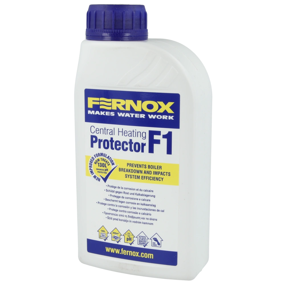 The Protector F1 central heating protection provides long-term protection against corrosion, limescale deposit, gas formation and sludging. It maintains the efficiency of the domestic central heating system and is suitable for mixed installations, metal, iron, cast iron, copper, brass and aluminium. The central heating protection is compatible with all plastic materials and seals commonly used in heating systems.