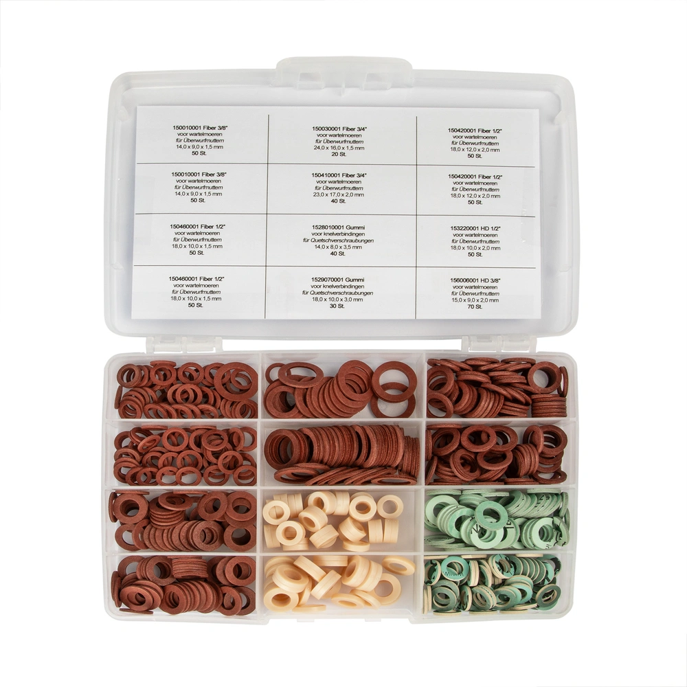 Fibre ring assortment, supplied in a transparent and impact-resistant PP box. Index about items and dimensions is included in each box.