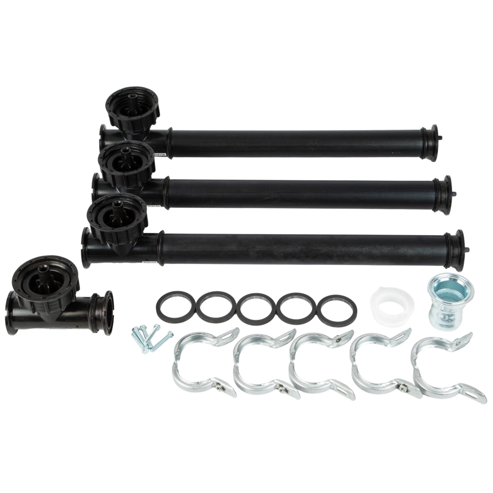 All product information Scope of deliveryThe spare part package for the filling line is used as quick mounting system for Dehoust PE bandage tanks from 1,000-2,000 l installed as a battery. It is equipped with a LORO-X flange for on-site filling line. The lines can only replace corrugated pipes if the centre-to-centre distance of the tanks can be increased to 760 mm.