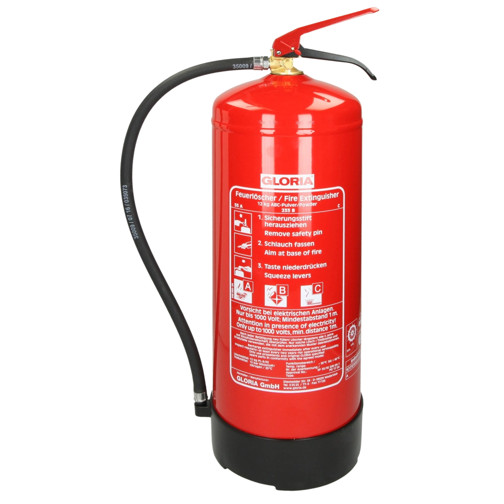 The constant-pressure fire extinguisher is particularly suitable for liquid gas and fuel oil storage. The squeeze grip valve is the carrier handle and the operating lever in one. The outcoming powder jet can be interrupted, thus powder reserves are possible. It is approved for fire classes A, B, C.