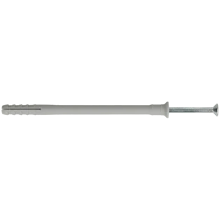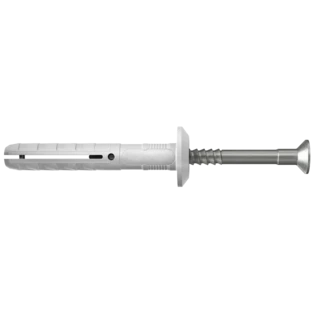 Hammer-in plug for push-through installation in almost all materials. The hammer-in plug consists of a high-quality nylon plug and a nail screw. The rapid hammerset installation reduces the amount of time required and the integrated hammer-in stop prevents the plug from expanding prematurely. The enclosed countersunk head screw can be easily unscrewed by a Phillips screwdriver, thus allowing for subsequent dismantling.