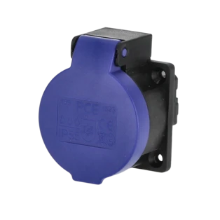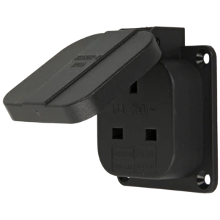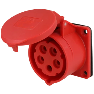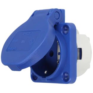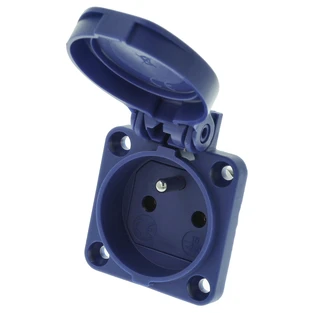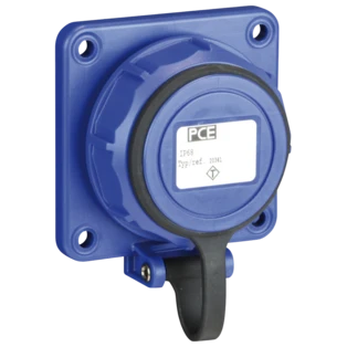 Flanged splash-proof sockets with hinged lid or cover band for easy replacement of existing sockets on wall-mounted distribution boxes or similar devices. With screw terminals for quick and easy cable connection.