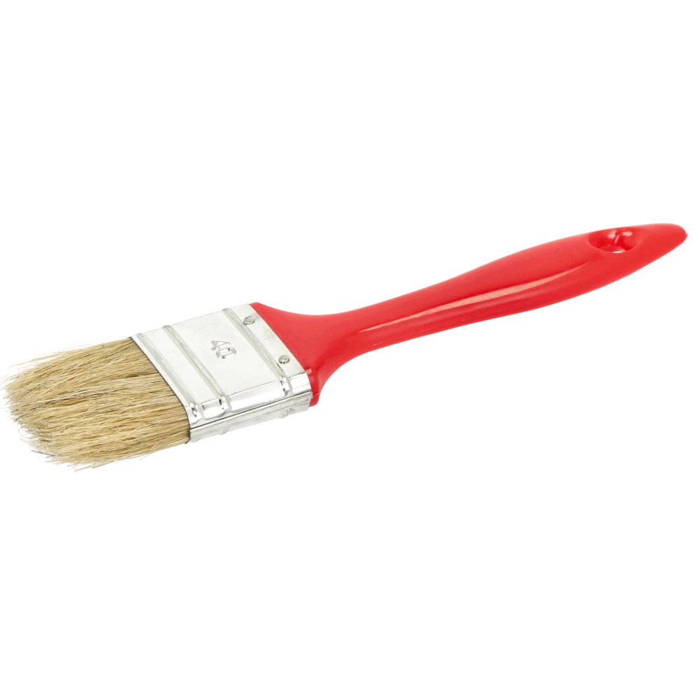 All product informationFlat paint brush for simple repair works. The paint brush comes fitted with pure natural bristles - 60 % tops (1x boiled), a tinplate ferrule and a plastic handle.