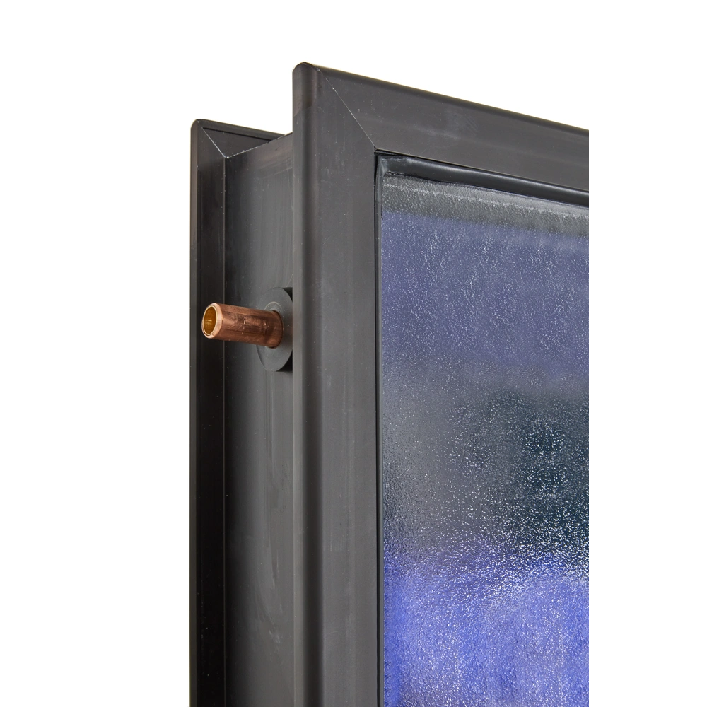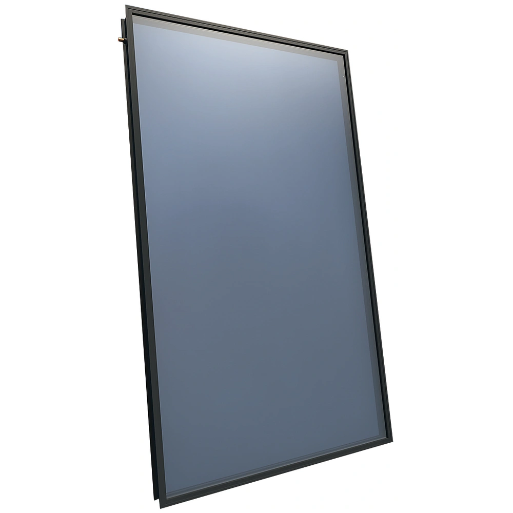 The collector frame and its rear panel made of aluminium offer stability and protection from corrosion. Dark anodising underlines the top-quality look and makes the solar collector optically appealing. The 4 mm solar safety glass offers high protection against hail damages.