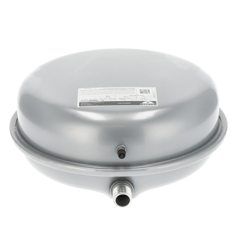 Pressure expansion vessel for heating systems. The flat design makes the vessel particularly suitable for the use in heat generators and in confined places.