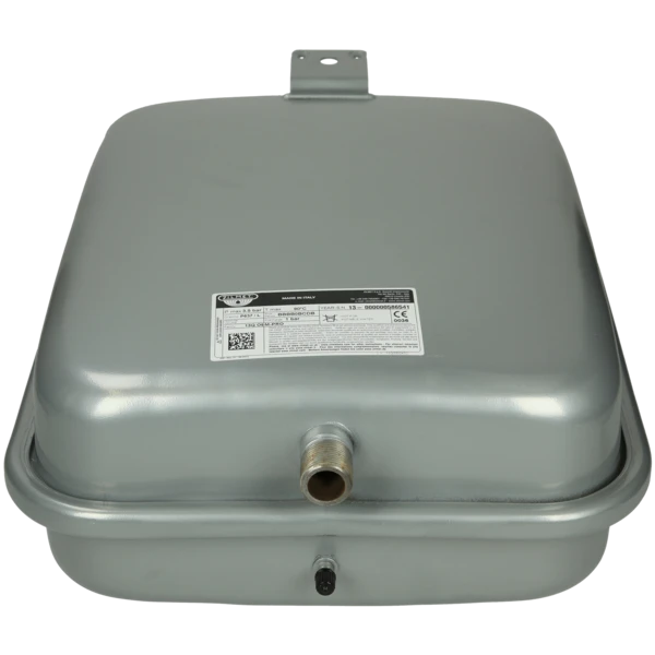 Pressure expansion vessels for heating systems. The flat design makes the vessels particularly suitable for the use in heat generators and in confined places.