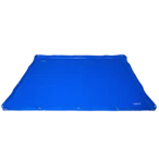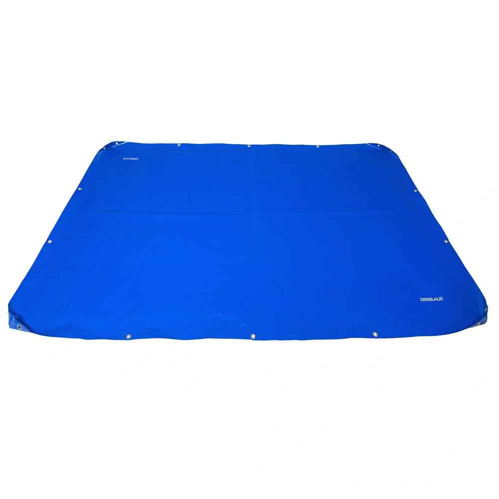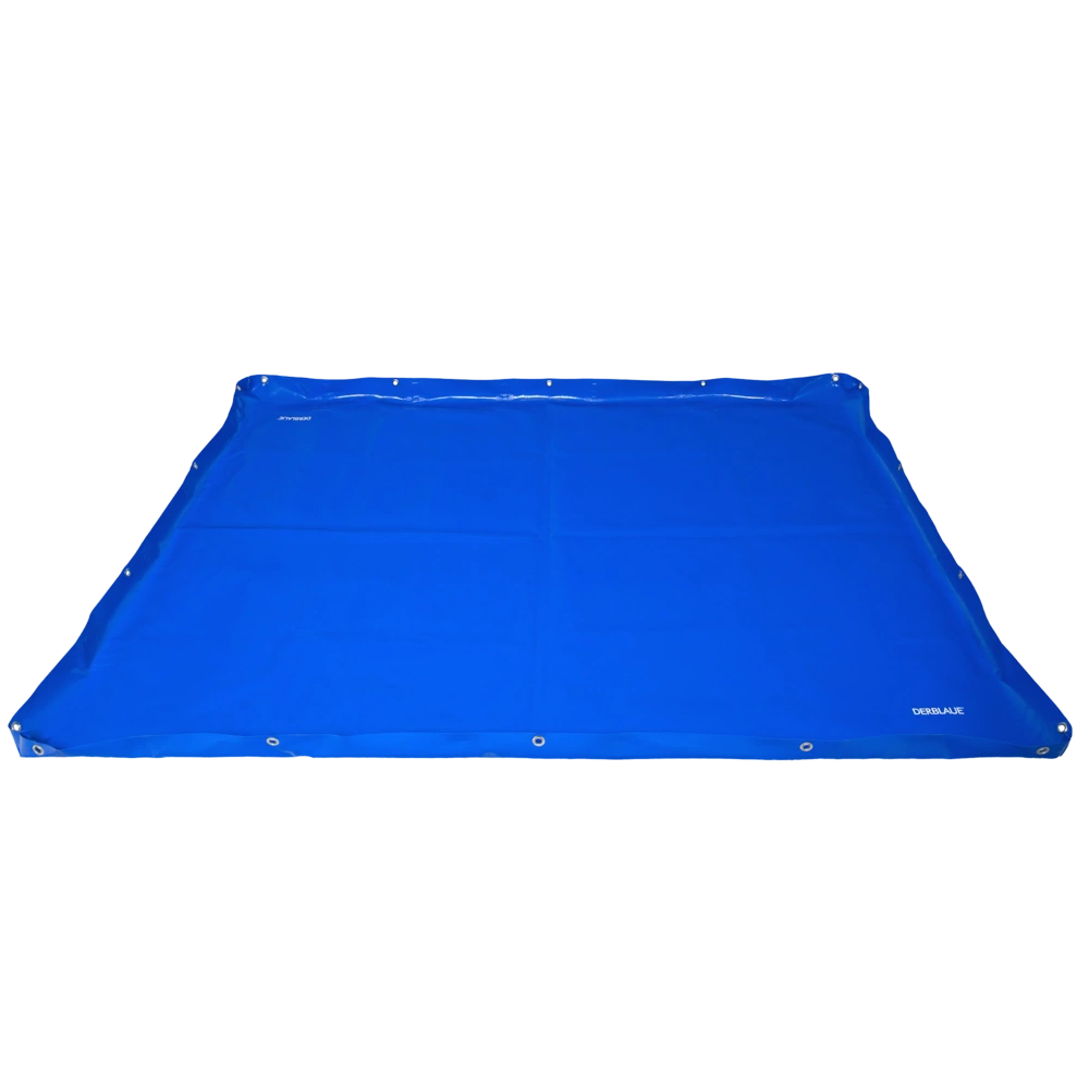 Underlay protection tarp with flexible metal elements at the edges (10 cm high), which can be flexibly shaped into an oversized tub. The tarp can be folded up to save space for transport and storage.