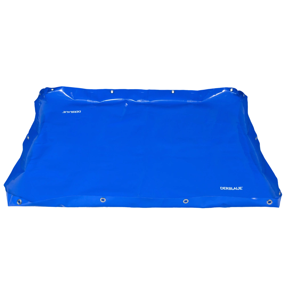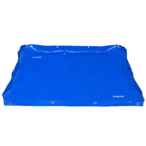 Underlay protection tarp with flexible metal elements at the edges (10 cm high), which can be flexibly shaped into an oversized tub. The tarp can be folded up to save space for transport and storage.