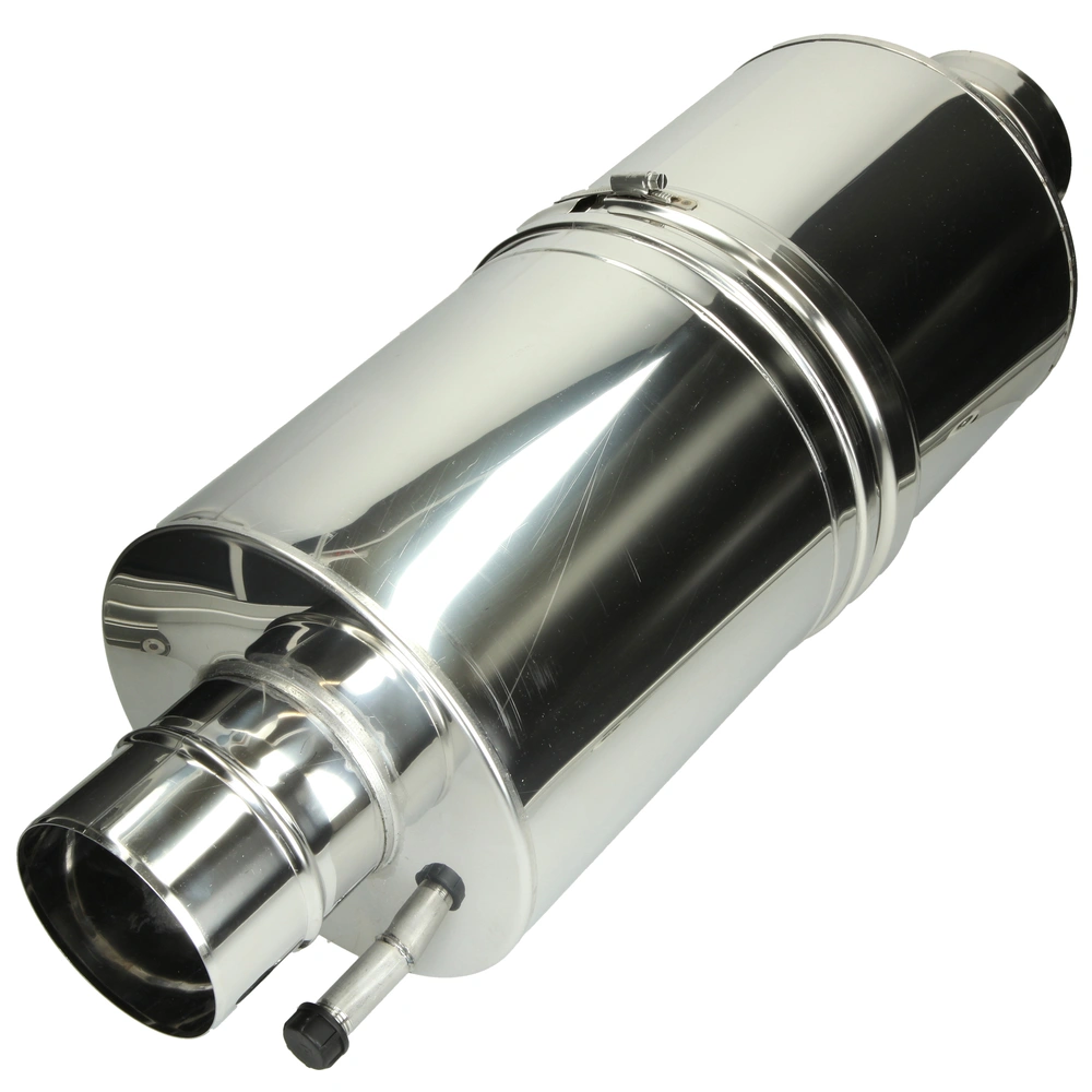 All product informationFlue gas silencer with a high quality standard suitable for both negative and positive pressure. Its stainless steel construction makes it extremely durable. The damping material consists of highly efficient mineral wool cartridges with a protective fleece made of stainless steel wool and expanded metal.