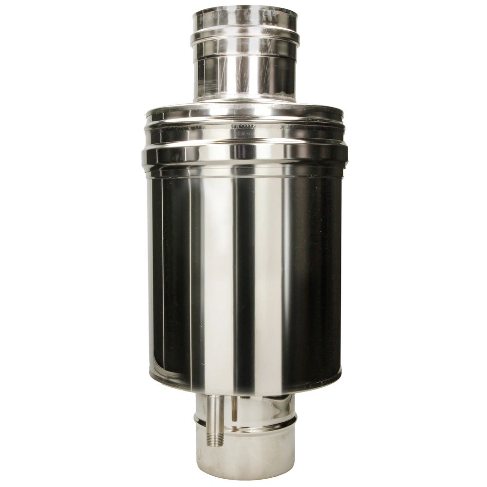 The durable silencer has a stainless steel casing with a water-repellent mineral fibre absorption core protected by glass fleece and an expanded metal mesh. Thanks to the special mineral fibres, this cost-effective flue gas silencer provides very effective attenuation.