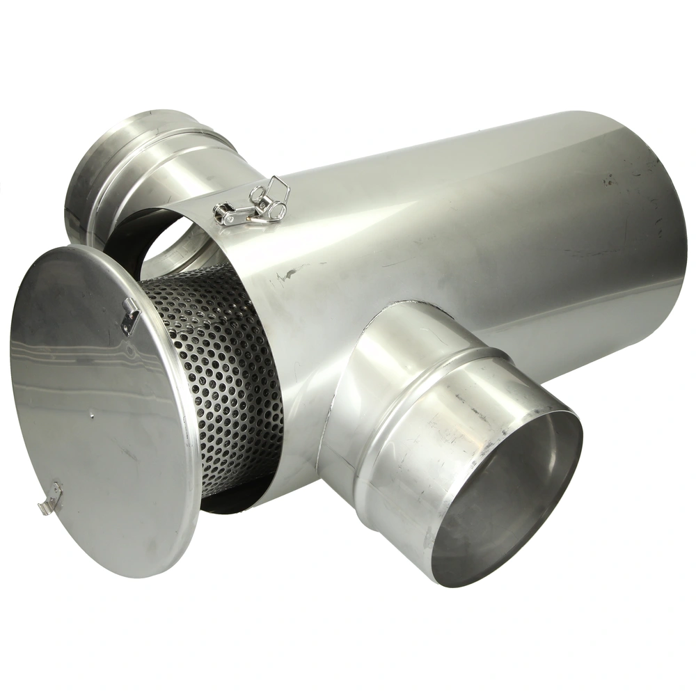 Compact flue silencer for significant reduction of operating noise from condensing boilers and standard combustion appliances in both negative and positive pressure operation. Tightness and maximum...