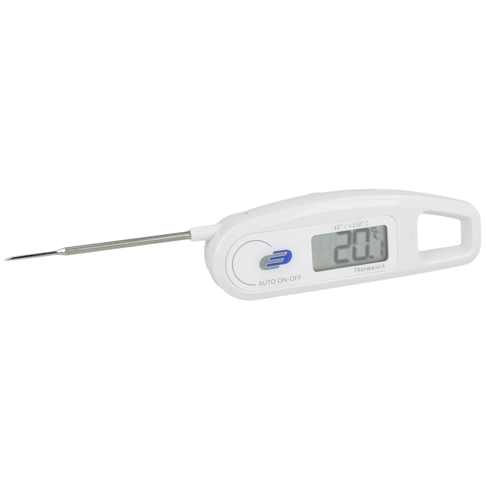 The waterproof thermometer fits in any pocket and does not weigh much. Fitted with a robust injection tip and a long sensor tube, it is ideal for measurements in fluids. Thanks to the small tip, the pocket thermometer has a very short response time.