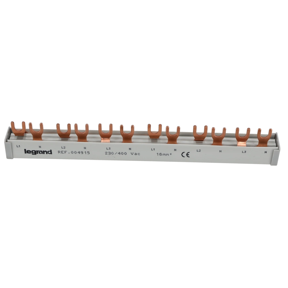 2-pole fork-type busbar with 4-pole supply for 2-pole MCBs L + N.