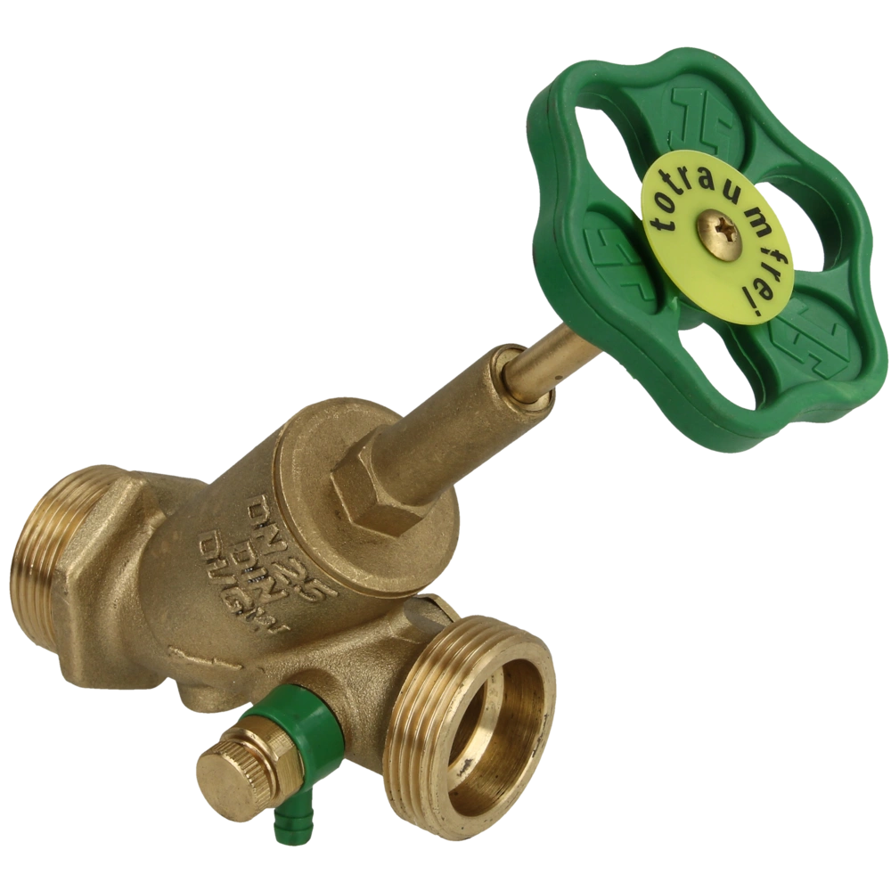 Legionella-safe free-flow valve with rising stem and grease chamber that is free of dead space.