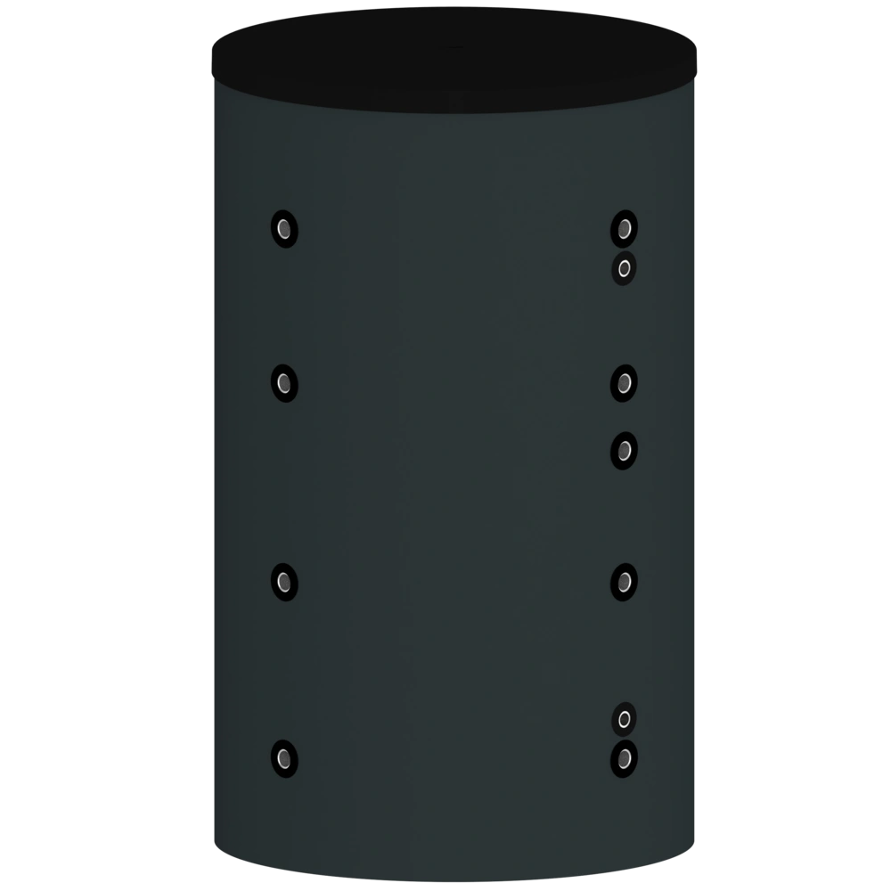 Naast de bufferaansluitingen A en N voor aanvoer en retour, blijven er 5 aansluitingen over voor andere doeleinden. De productafbeelding toont een 3D-weergave van de opslagtank. Stel het filter in op ALLES om de exacte lay-out van de aansluitingen te zien.