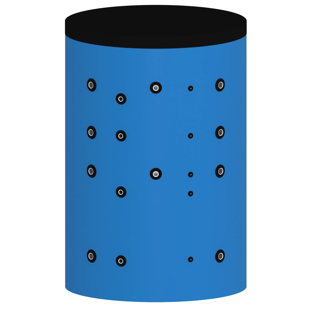 Naast de bufferaansluitingen A en N voor aanvoer en retour, blijven er 5 aansluitingen over voor andere doeleinden. De productafbeelding toont een 3D-weergave van de opslagtank. Stel het filter in op ALLES om de exacte lay-out van de aansluitingen te zien.