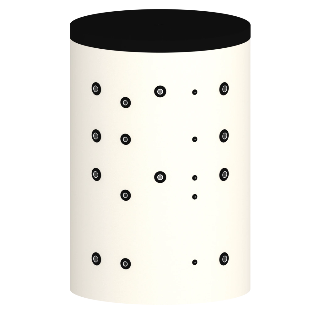 Der Speicher hat eine Höhe inklusive Dämmung von 2.350 mm, ein Kippmaß von 2.280 mm und einem Durchmesser mit Dämmung von 1.015 mm.