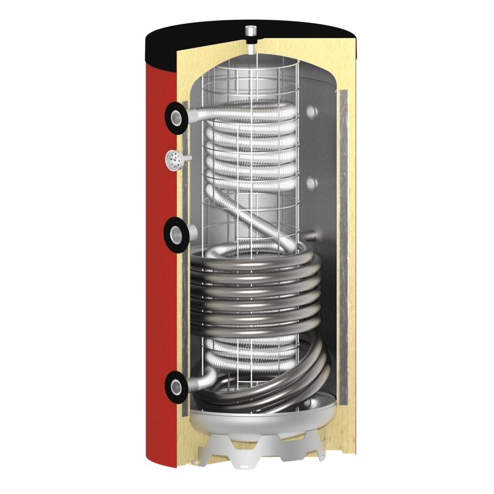 The auxiliary smooth tube heat exchanger gives your customer the option of integrating an additional heat generator at any time and feeding its energy into the fresh water storage tank.