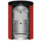 The structure of fresh water storage tanks differs fundamentally from conventional, large-volume domestic hot water storage tanks. A built-in corrugated stainless steel pipe separates the drinking water from the heating water and also serves as a high-performance heat exchanger. This combines the advantages of a buffer storage tank with those of an instantaneous water heater.