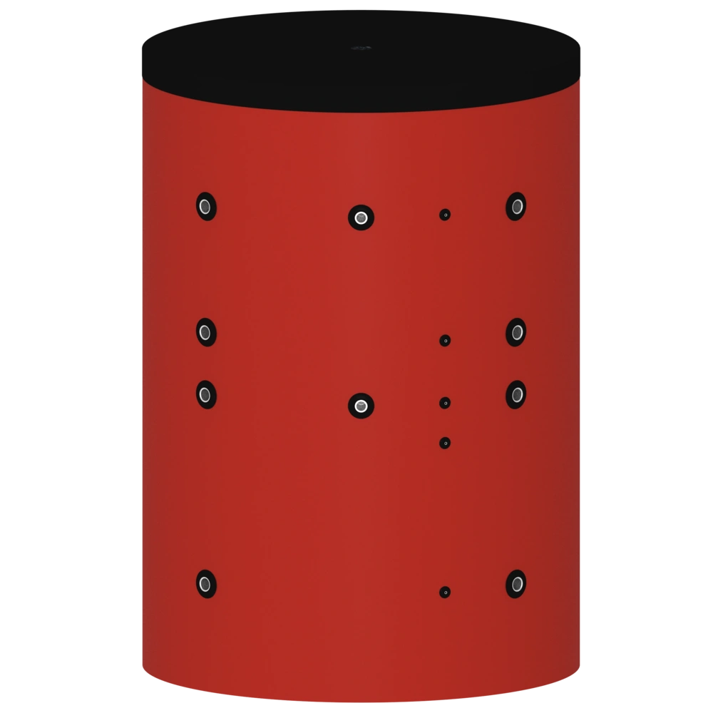 Naast de bufferaansluitingen A en N voor aanvoer en retour, blijven er 5 aansluitingen over voor andere doeleinden. De productafbeelding toont een 3D-weergave van de opslagtank. Stel het filter in op ALLES om de exacte lay-out van de aansluitingen te zien.