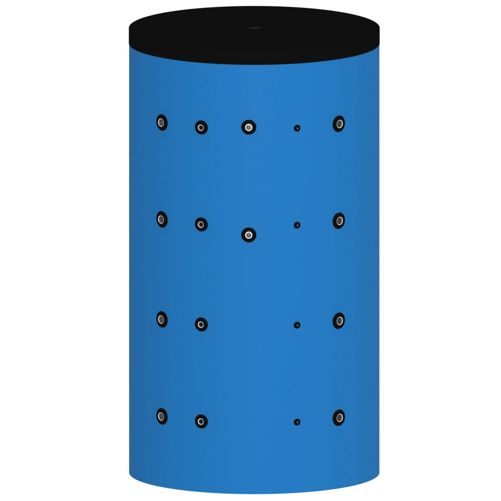Naast de bufferaansluitingen A en N voor aanvoer en retour, blijven er 5 aansluitingen over voor andere doeleinden. De productafbeelding toont een 3D-weergave van de opslagtank. Stel het filter in op ALLES om de exacte lay-out van de aansluitingen te zien.