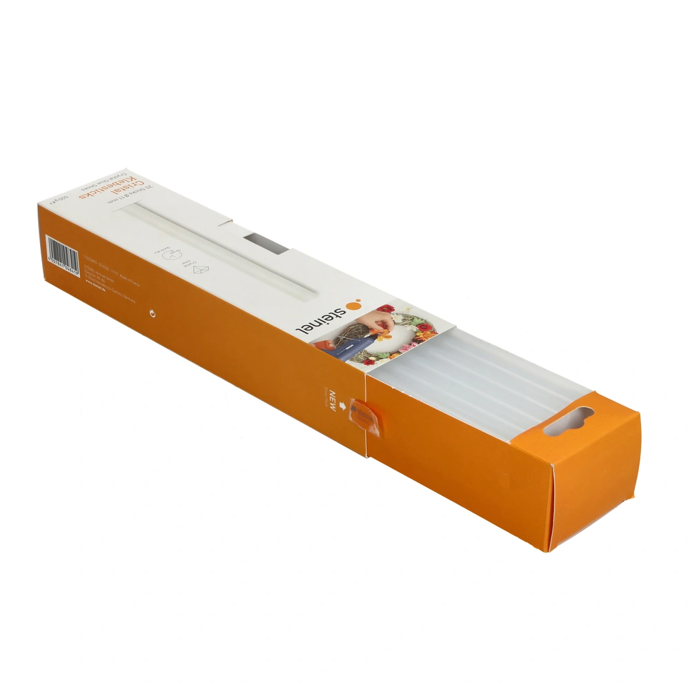 All product informationGlue sticks for hot-melt glue guns in industrial and commercial applications for various materials such as glass, rubber, wood, ceramics, leather, paper and textiles. The transparent, solvent-free and extremely strong adhesive is firm after max. 10 seconds.