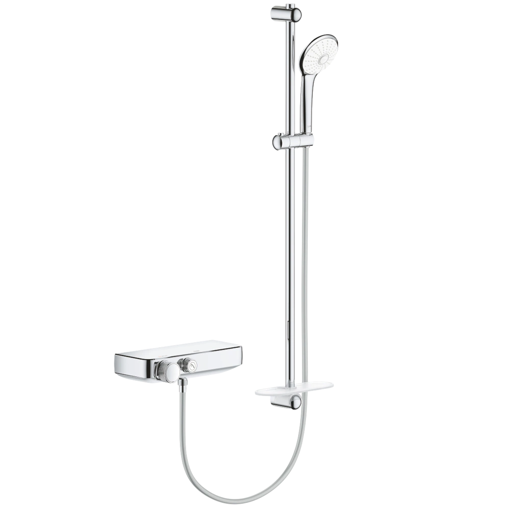 The Grotherm Smartcontrol thermostatic shower mixer can be practically turned on and off with a push of a button. By turning the handle, the temperature and the flow rate can be adjusted individually...