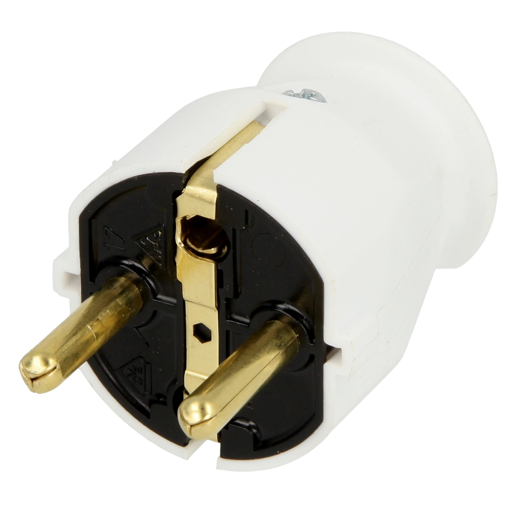 Grounding-type plug made of plastic with central cable entry and 2 contact systems fo cable cross-sections up to 3 x 1.5 mm².