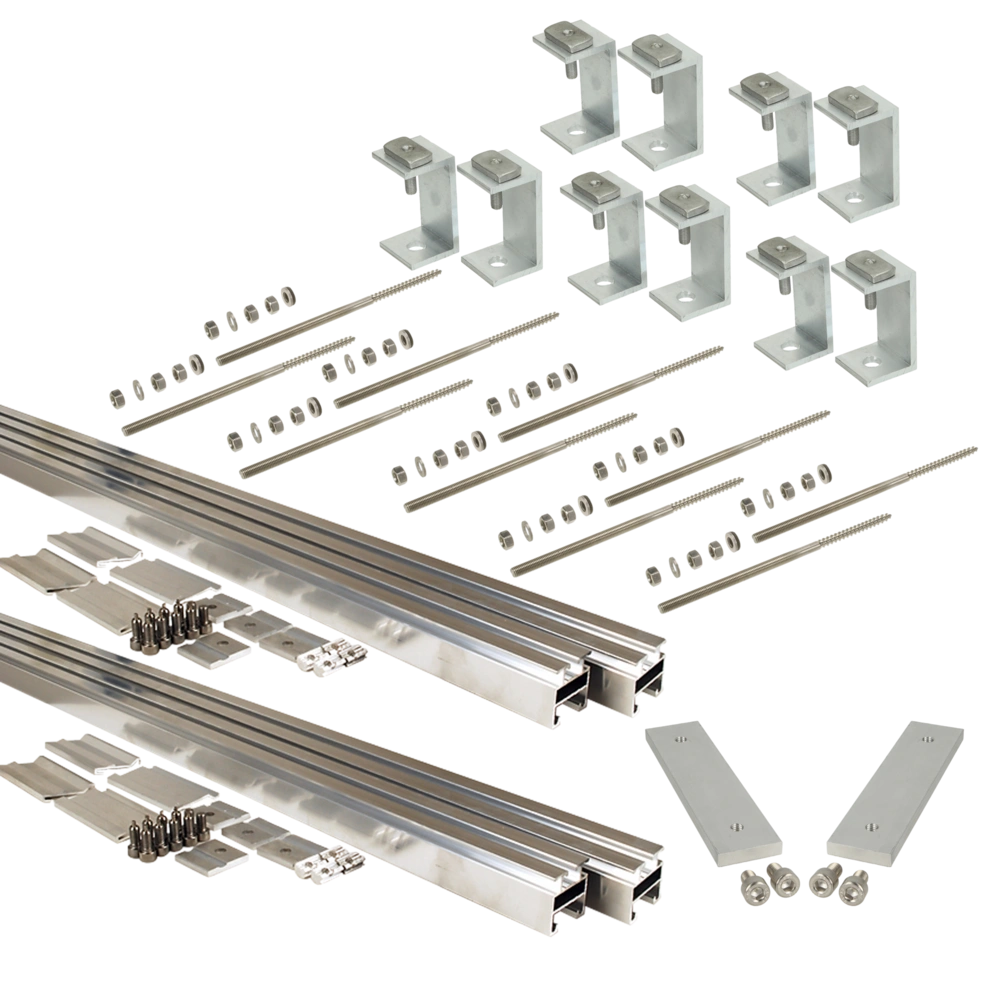 Complete kit for on-roof or facade mounting of 4plus flat collector panels.