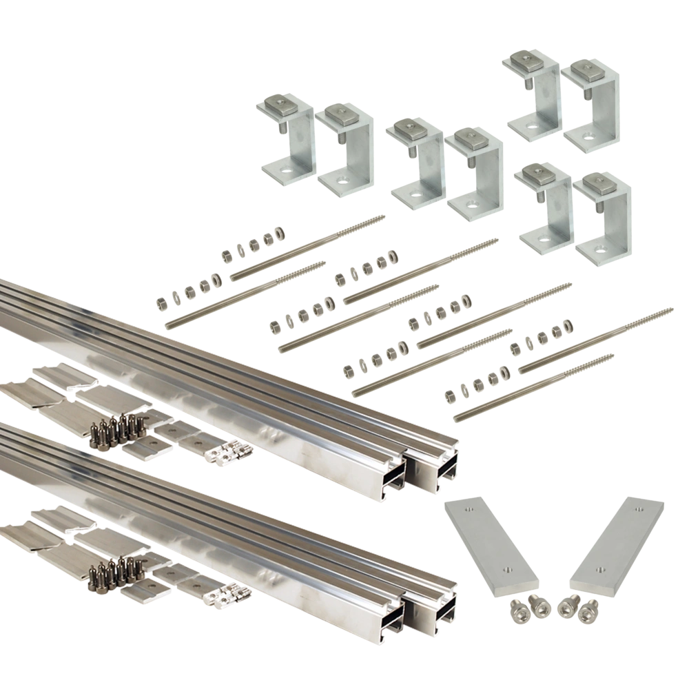 Complete set for on-roof or facade mounting of 4plus flat collectors. Suitable for various roof and wall types.