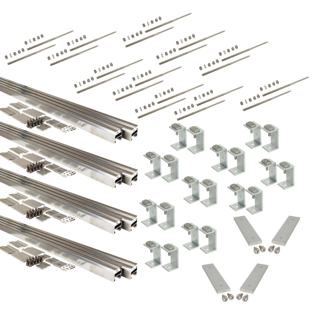 Complete set for on-roof or facade mounting of 4plus flat collectors. Suitable for various roof and wall types.