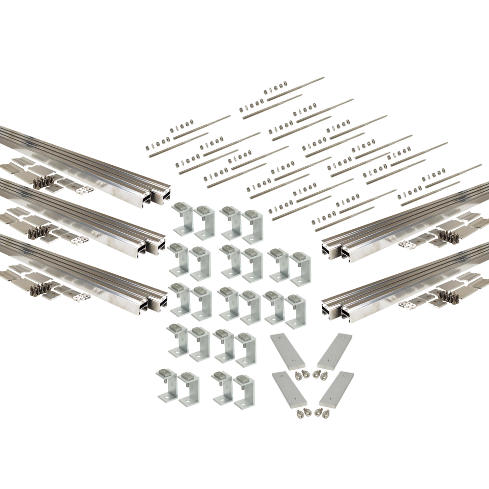 Complete set for on-roof or facade mounting of 4plus flat collectors. Suitable for various roof and wall types.
