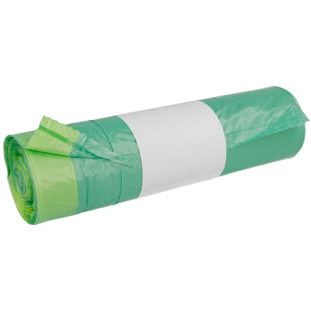 Bin liners for everyday waste disposal. The drawstring makes it easy to pull the bags together and tie them for transport. The bags are made of an HDPE material blend.