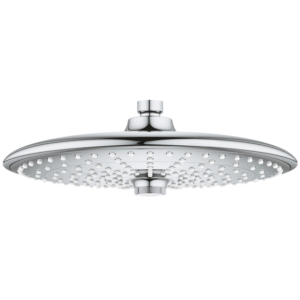 The head shower has a perfect spray pattern with the spray modes Rain, Soft Rain and Jet spray. Fixing is via ball joint with a swivel range of 15°. The surface is easy to clean and scratch-resistant. Due to the anti-limescale system, deposits can be removed easily.