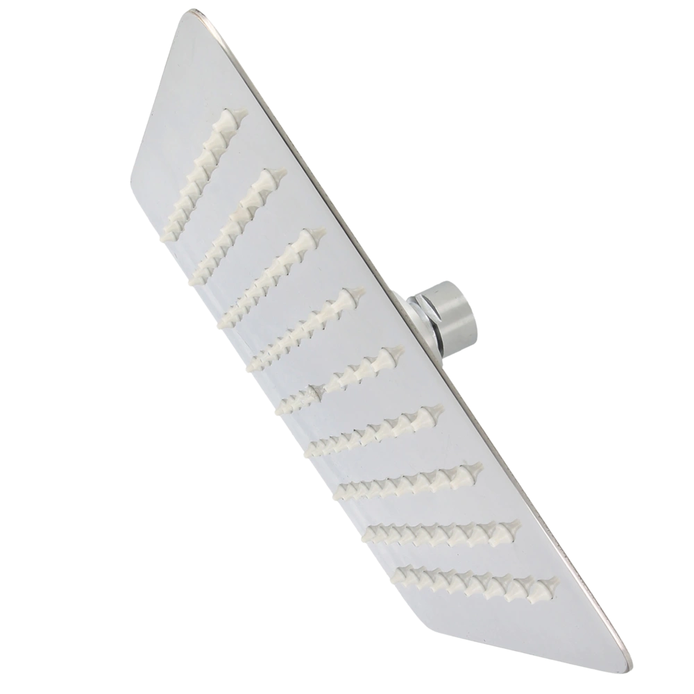 All product informationExtra-flat head shower made of chrome-plated and polished stainless steel with the spray mode Shower Rain. The ball joint makes it possible to swivel the head shower in different directions and to adjust it as required. Anti-limescale nozzles help with easy cleaning.