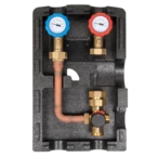 Pump group with ESBE VRG 4-way mixing valve for solid fuel boilers. The 4-way mixing valve prevents condensation or serves as a return temperature increase. Circulation pumps with an overall length of 130 mm can be used...