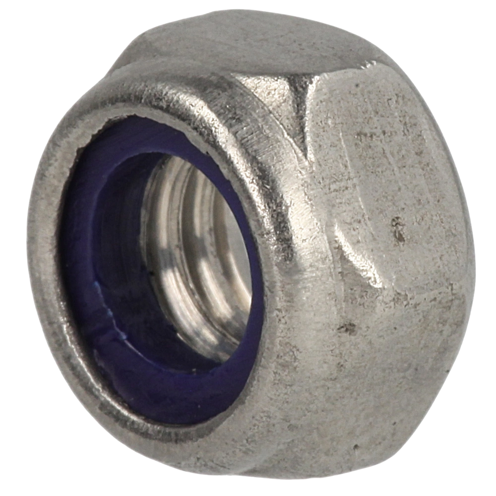 All product informationHexagon nut made of A2 stainless steel in accordance with DIN 985 with plastic locking ring against unintended loosening.