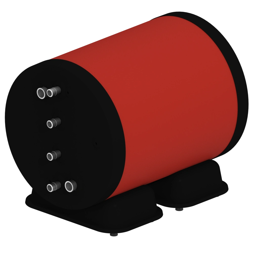 Mocht een liggende boiler de enige mogelijkheid zijn kan beter worden gekozen voor de Horizontal fresh-water storage tank 200 litres with 2 extra HXs met twee extra buiswisselaars (gezien de warmteoverdracht van warmtepomp naar het opslagvat)