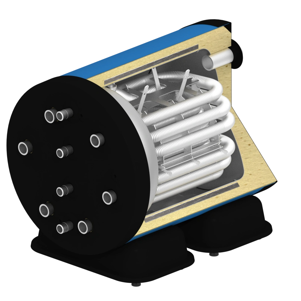 The two additional heat exchangers give your customer the option of using additional heat generators and feeding their energy into the fresh-water storage tanks.
