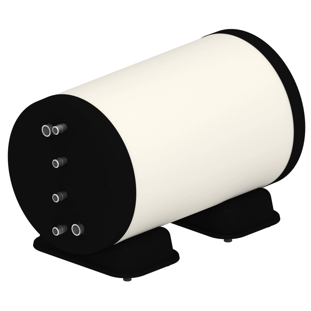Mocht een liggende boiler de enige mogelijkheid zijn kan beter worden gekozen voor de Horizontal fresh-water storage tank 200 litres with 2 extra HXs met twee extra buiswisselaars (gezien de warmteoverdracht van warmtepomp naar het opslagvat)